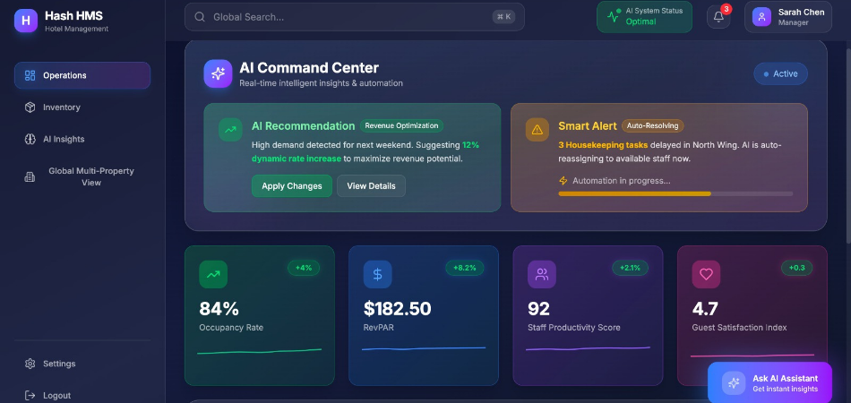 Hospitality businesses operate in real time — guest experience, availability, pricing, and operations must stay perfectly synchronized. Hash Repository builds enterprise-grade hotel management software designed to streamline hotel operations, reduce manual work, and elevate the guest experience.